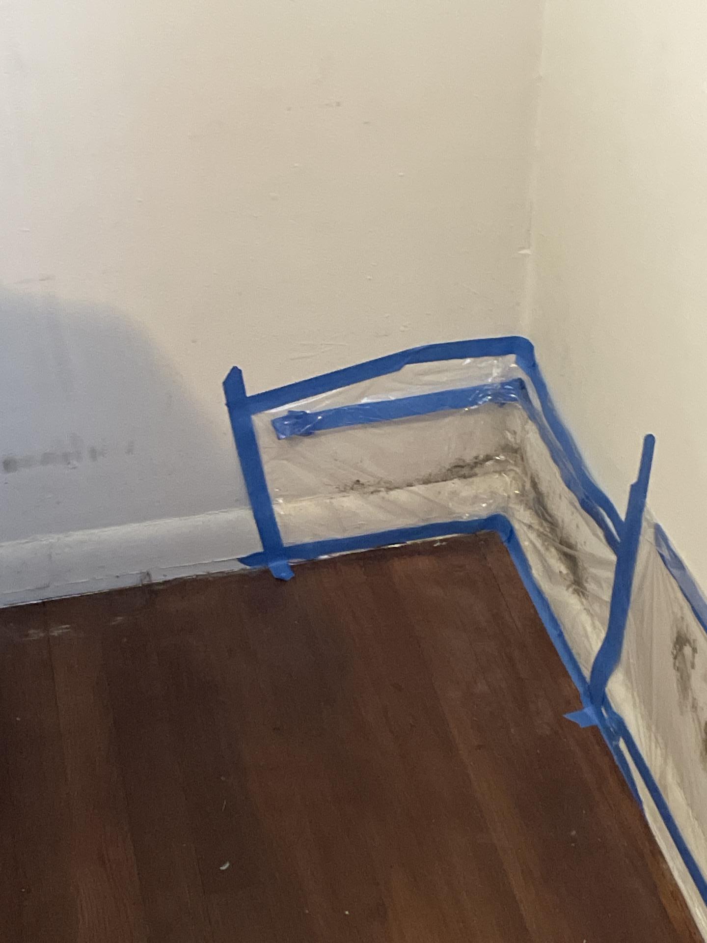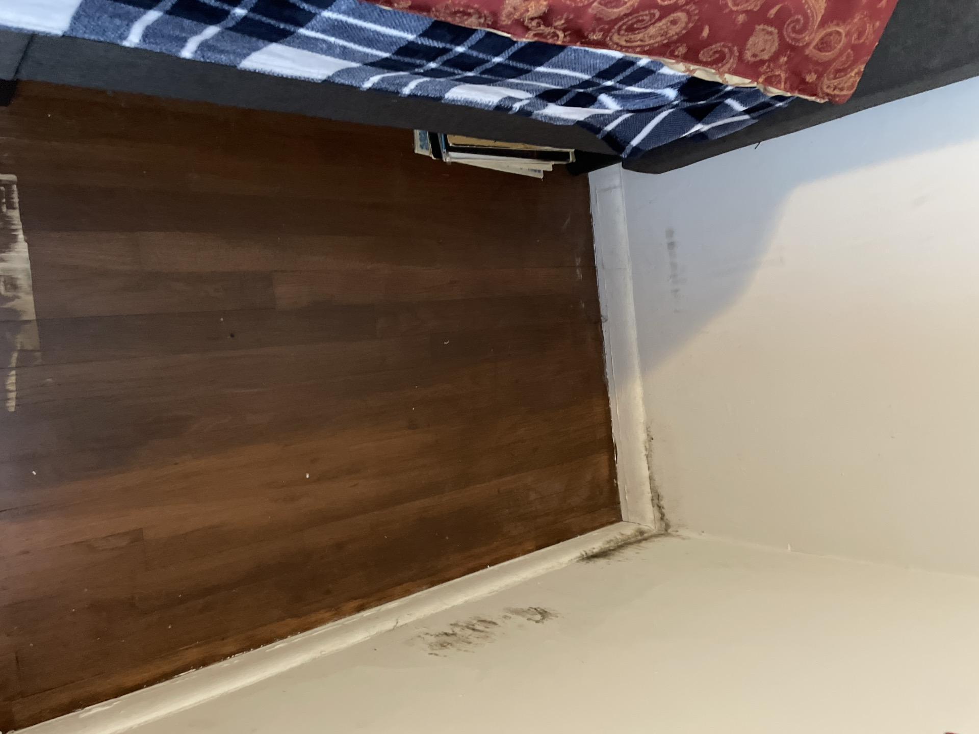 The customer experienced a mold contamination issue, specifically visible mold growth along walls and baseboards, requiring professional remediation services.