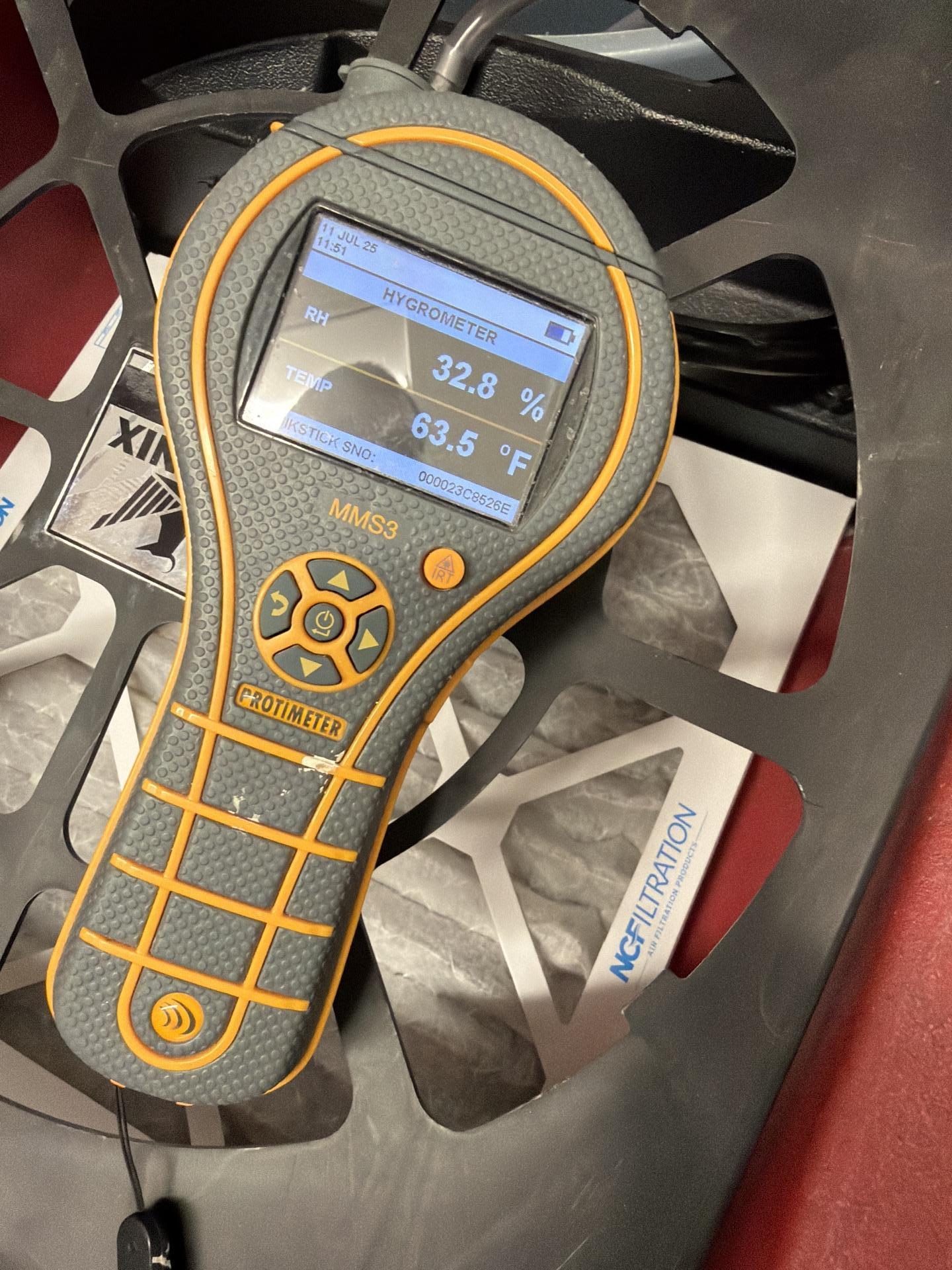 We provided comprehensive water damage restoration services, which included: Moisture Assessment: Using advanced Protimeter hygrometers to precisely measure relative humidity and temperature, ensuring the environment reached optimal drying conditions.