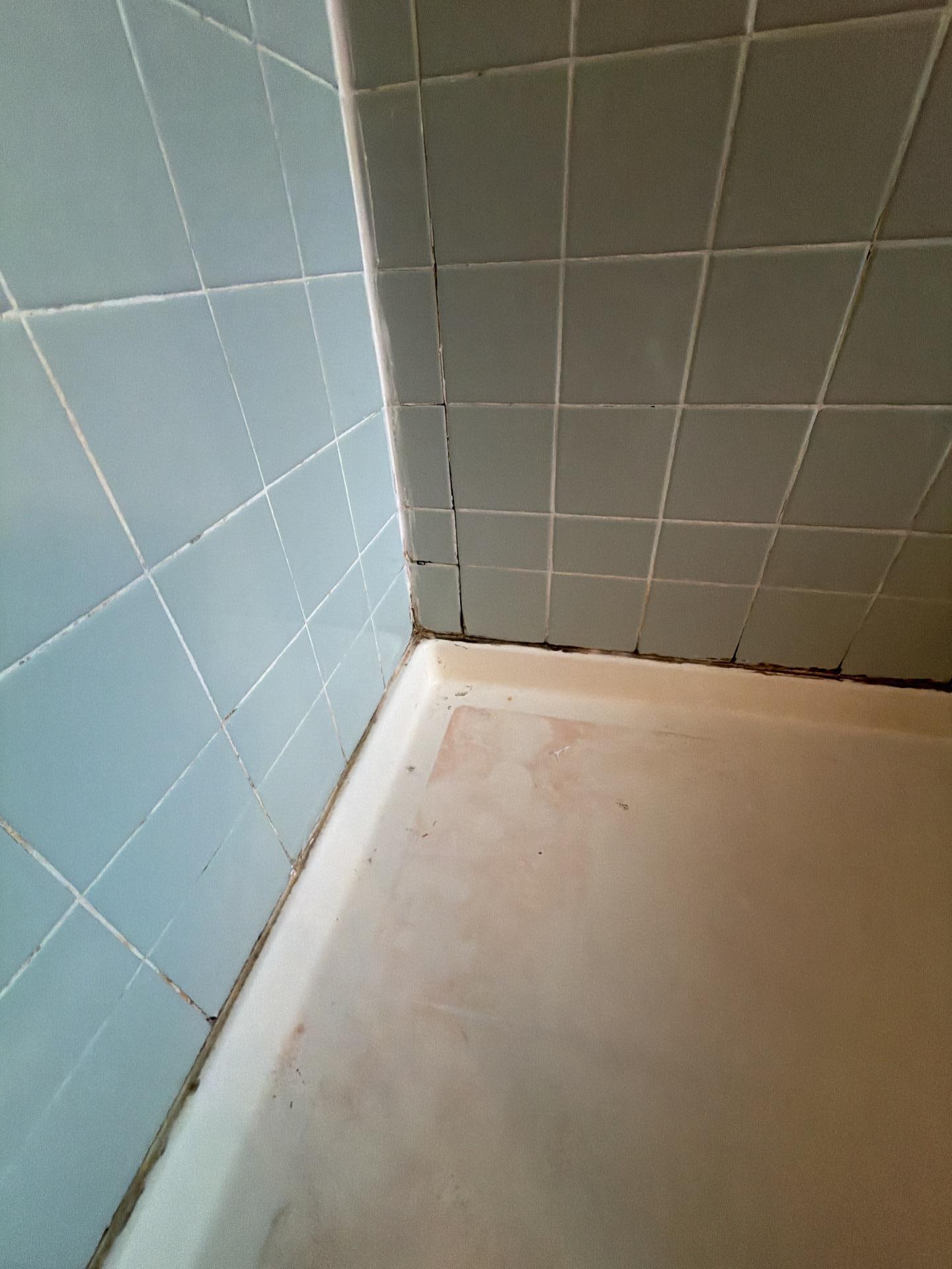 The customer contacted us to address concerns regarding visible mold growth and moisture accumulation in their bathroom. Specifically, they identified biological growth along the shower stall’s grout lines and base, as well as water staining on the adjacent wooden cabinetry, suggesting a potential leak or failure in the bathroom's waterproofing seals.