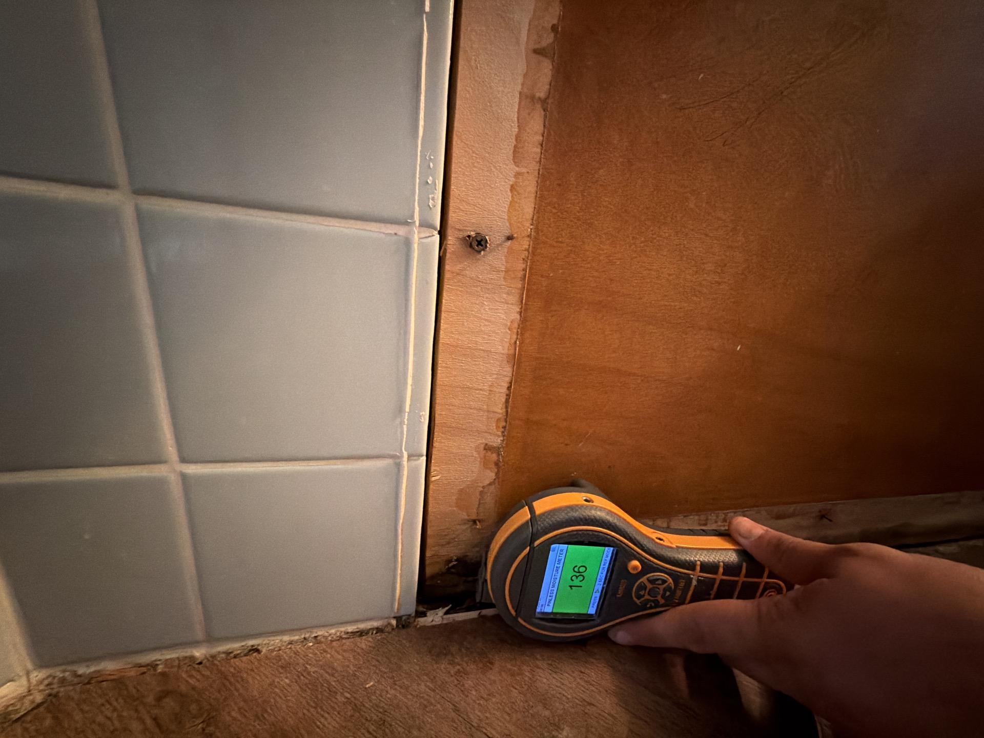 We provided professional mold mitigation and moisture detection services. Our technicians used advanced pinless moisture meters to non-invasively scan the wooden surfaces and wall structures, identifying hidden pockets of moisture that contribute to mold growth. We then treated the affected tiles and grout to remove existing spores and assessed the cabinetry for structural integrity. Finally, we recommended specialized cleaning and resealing of the shower area to prevent future water intrusion and ensure a healthy indoor environment.