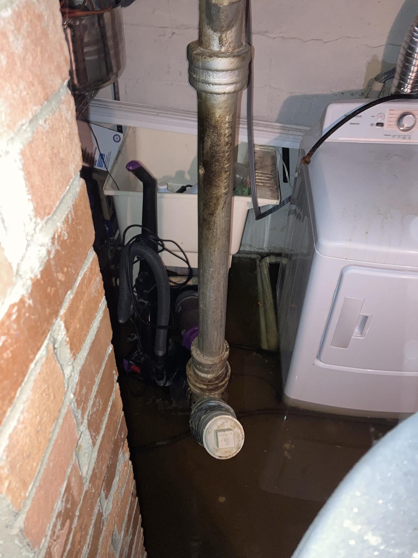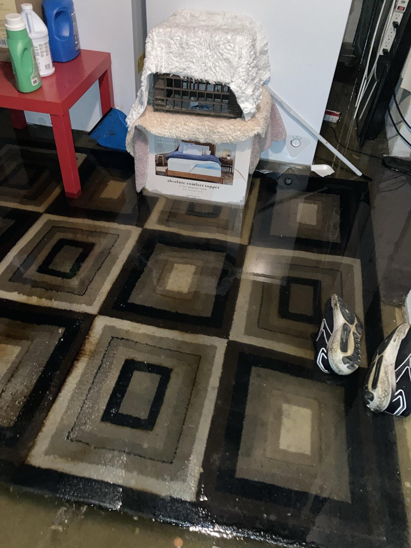 The customer contacted us due to a severe basement flood caused by a backed-up floor drain. This failure resulted in 4–5 inches of standing water across the basement, submerging personal belongings, area rugs, and laundry appliances. The customer required immediate emergency water extraction to prevent structural damage and mold growth.