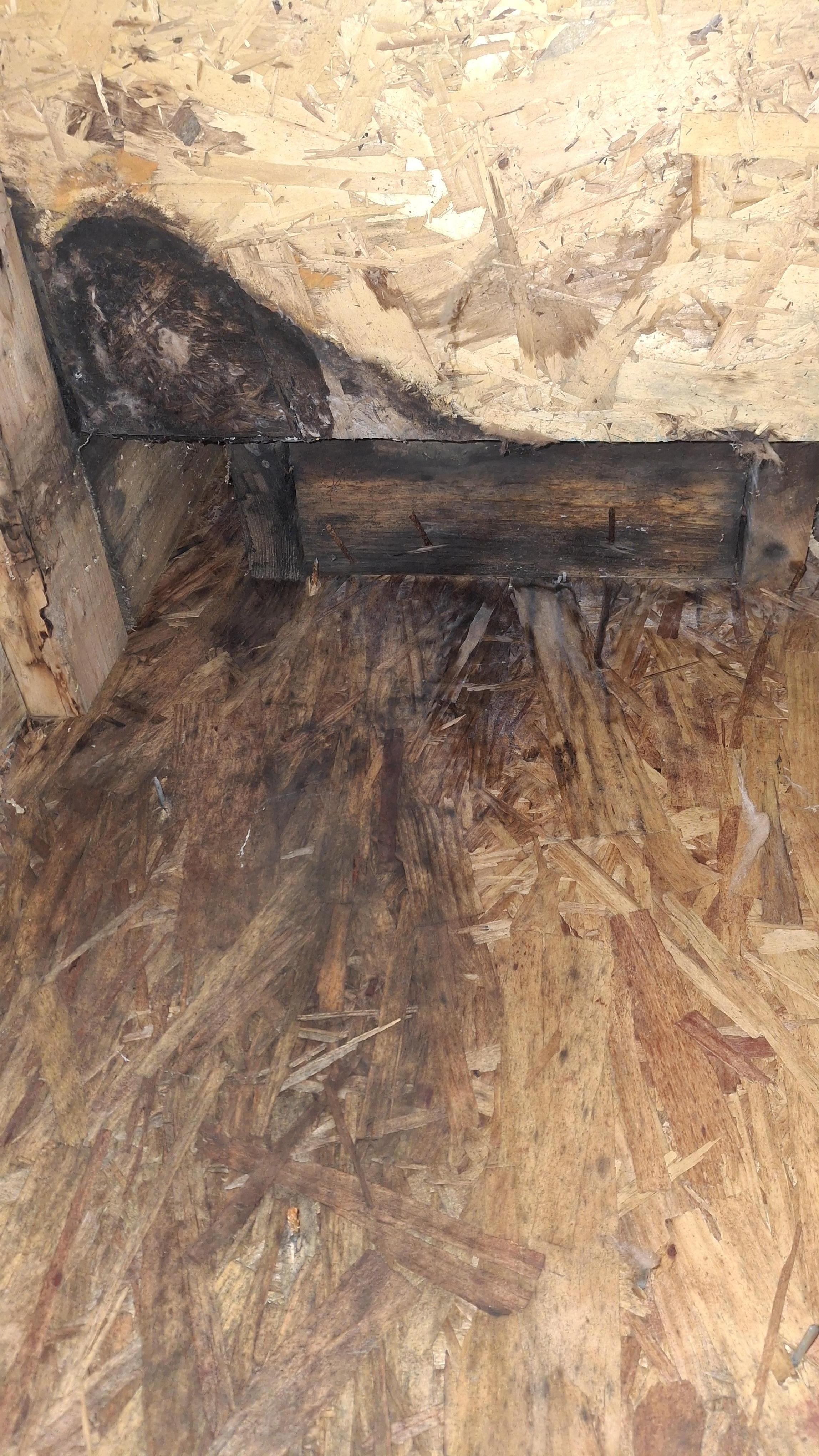 The customer reached out after discovering a persistent ceiling leak that had caused significant structural damage to the attic and roof decking. Over time, the moisture intrusion led to severe wood rot, the formation of fungal growth, and the deterioration of the oriented strand board (OSB) panels and supporting wooden joists.
